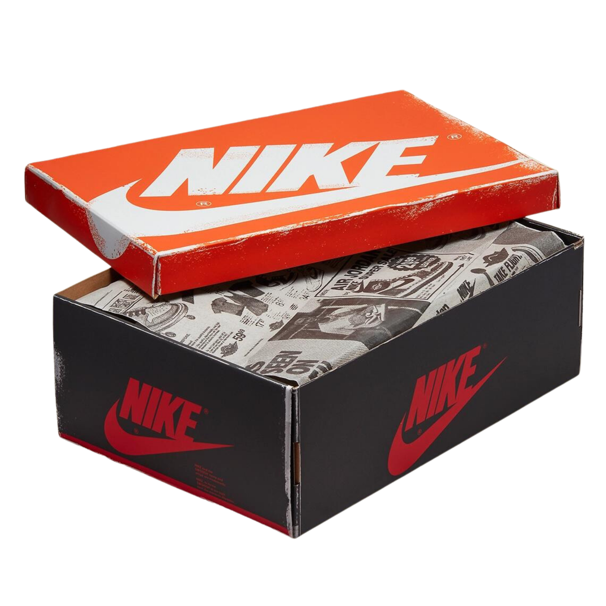 The Lost & Found AJ1 High OG looks just as the name would suggest. If you were to come across this pair while digging in the crates, you'd expect some wear & tear; to both the box and shoes. Cracked leather, white paint marks on the bottom, old sale slip, wrapped in the newspaper and packaged in an "aged" AJ1 box . Insane attention to detail, what more you can ask for?