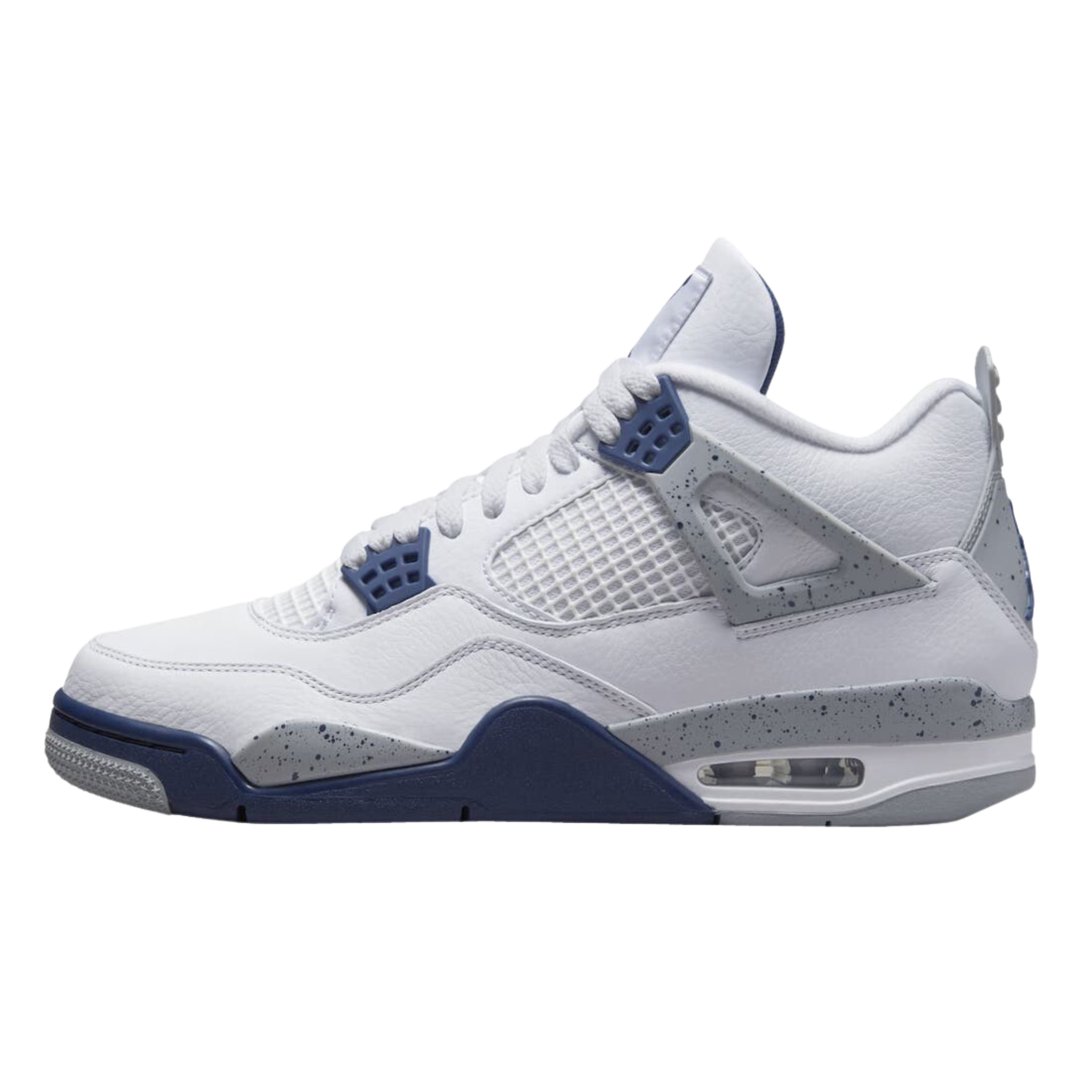 An autumnal update to the iconic “White Cement” Air Jordan 4, the model remains almost identical to its 2016 re-release as it features crisp white tumbled leathers while flipping its formerly jet-black accents for a dominant sampling of “Midnight Navy”.