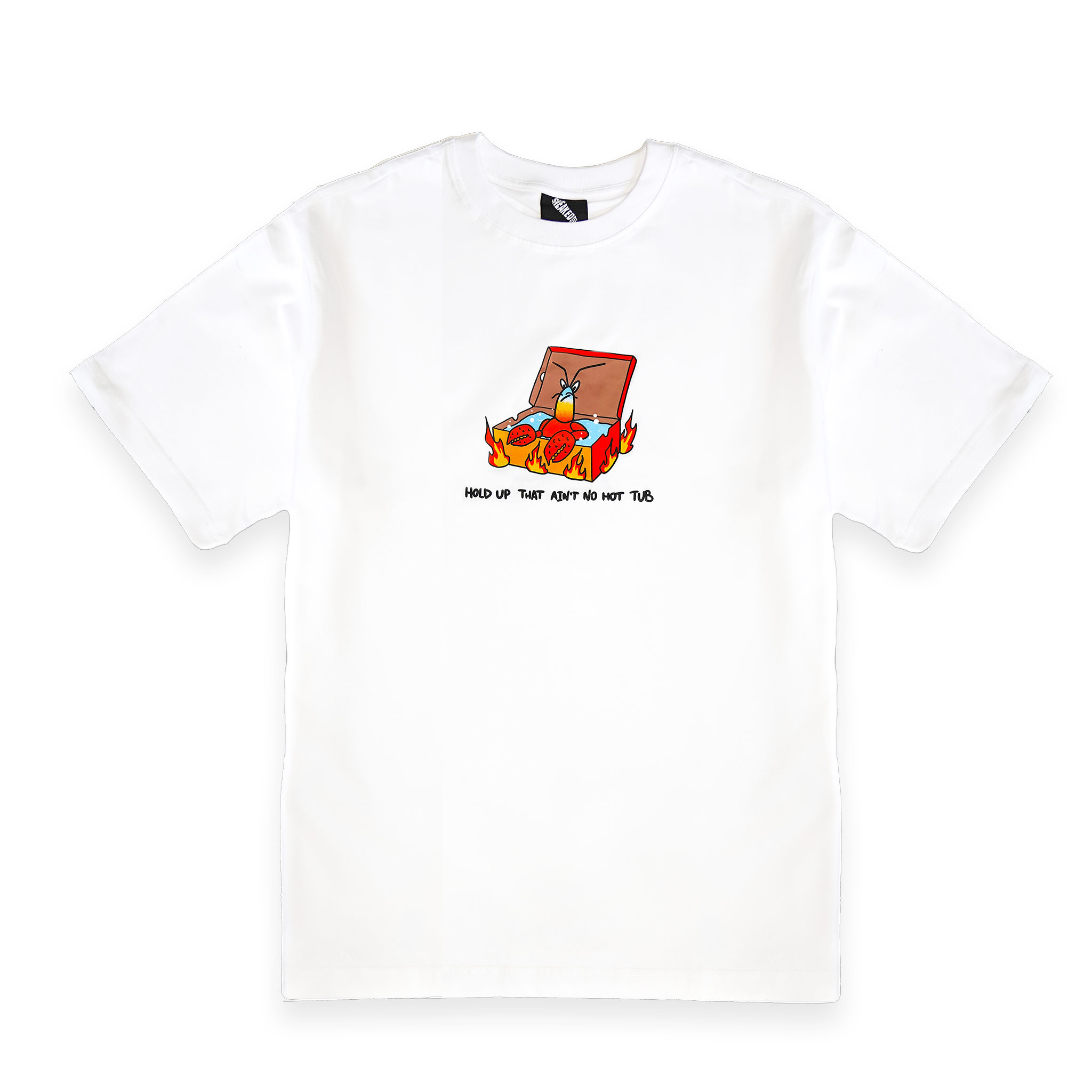 The attention-grabbing puff-printed phrase, "Hold up, that ain't no hot tub," adds a playful and unexpected twist to the design. It serves as a conversation starter and a nod to those in the know, instantly connecting you with like-minded enthusiasts who appreciate the fusion of fashion, sneaker culture.