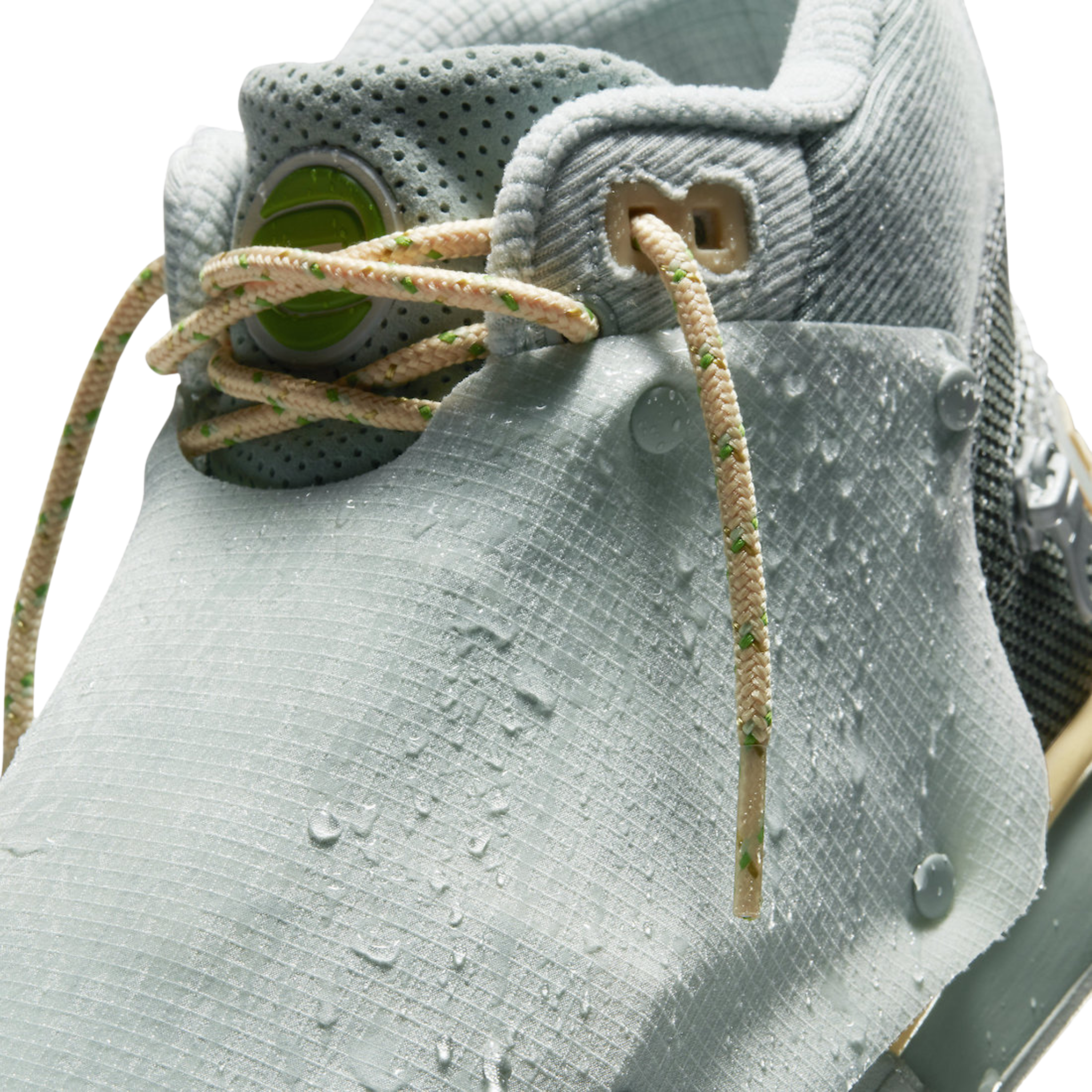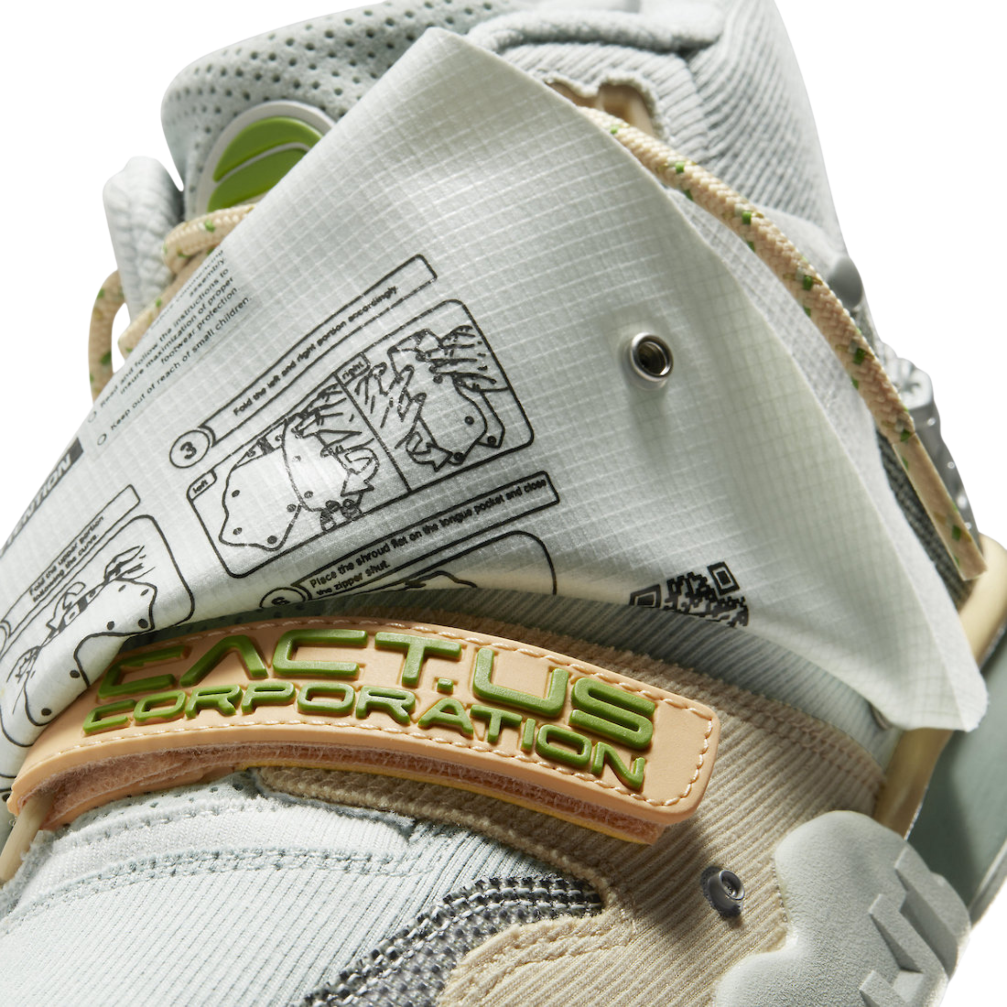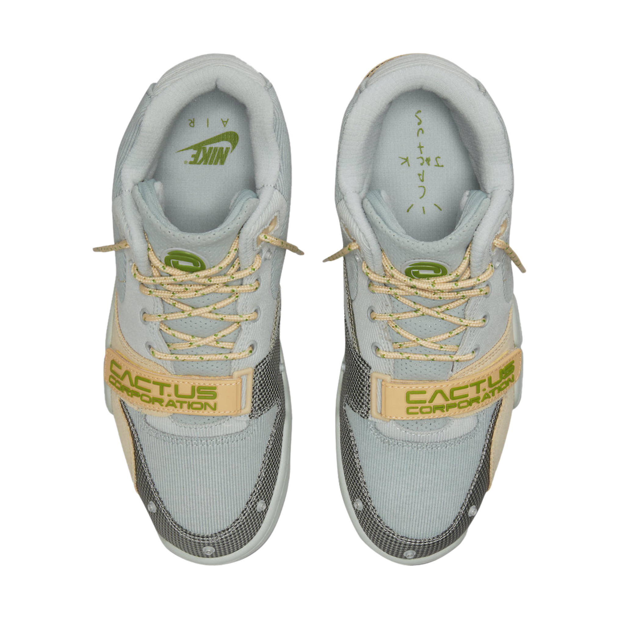 Replacing the traditional leather build and familiar panels, Scott opts for a textile finish in Grey Haze hue. 'Cactus Corporation' appears on the forefoot strap and back heel area, where a zippered stash pocket can be found. Scott's signature reverse Swoosh is found on the medial side, and Cactus Jack branding appears on the perforated nubuck tongue. According to the designer this collaboration with Travis Scott is the most unique one.